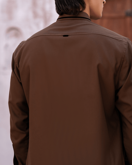 Chocolate Brown Studded Suit – Shirt Collar & Metal Hardware Detail (Stitched) Shalwar Kameez