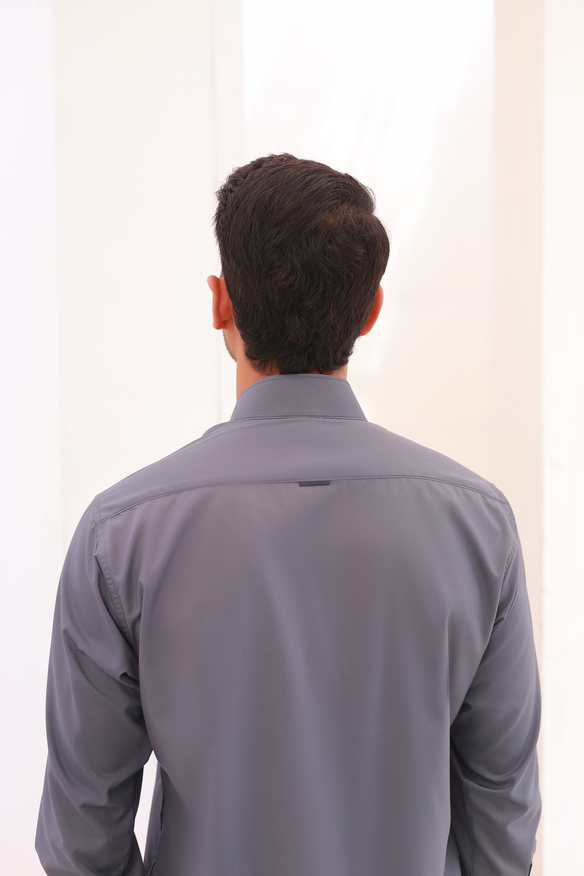 Blueish-Purple Kurta Pajama is designed for a standout formal look. The outfit features a structured Sherwani collar enhanced with intricate patch details that extend to the cuffs for a coordinated, premium finish. Completed with high-quality metal buttons, this stitched ensemble offers a modern take on traditional wear.