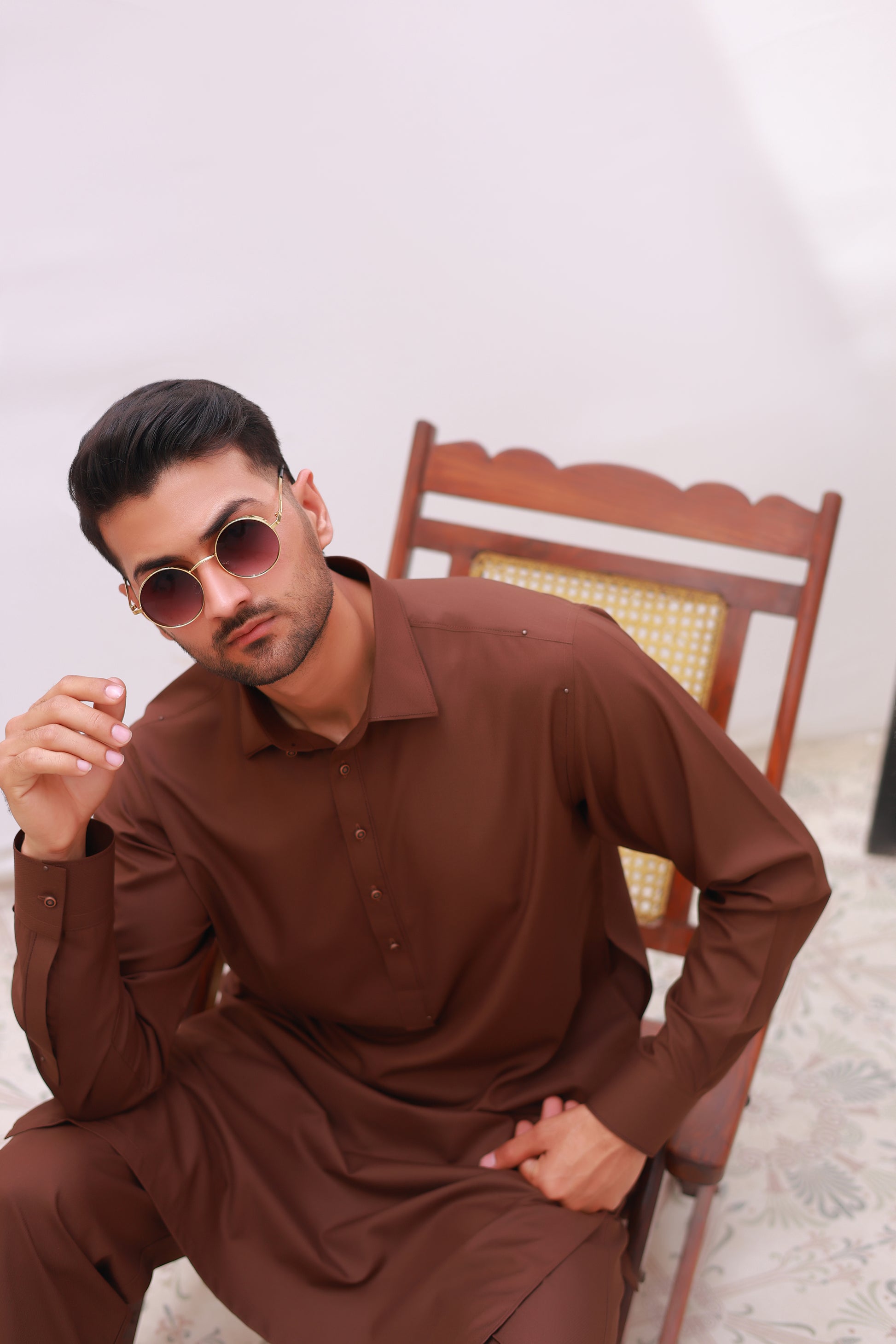 This Rust Kurta Pajama is crafted from premium Wash n Wear fabric, making it the perfect choice for busy days and long events. Designed for a sharp, crisp look that lasts, this stitched outfit features a traditional Shirt collar for a clean and versatile aesthetic.